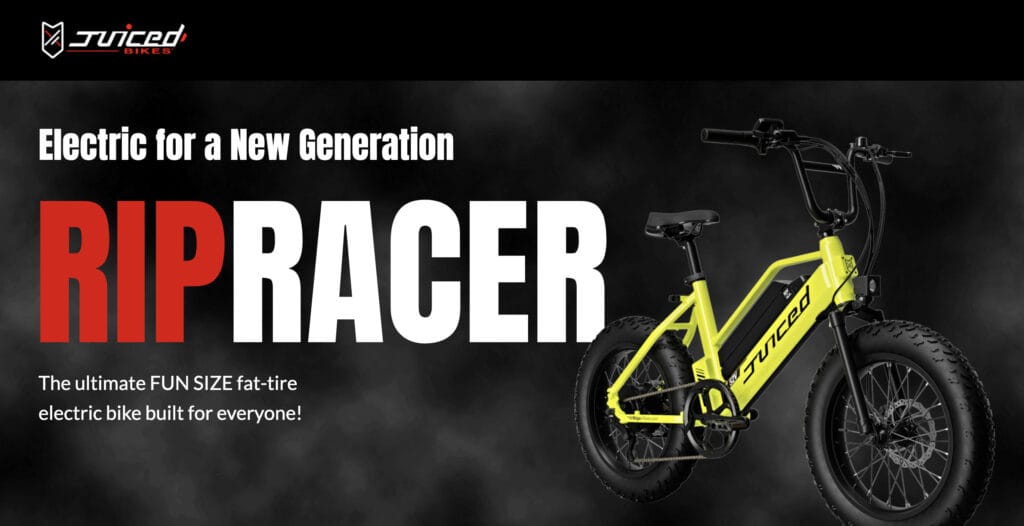 Juiced Bikes announced a new fat tire ebike: RipRacer. This ebike will be available for pre-order on Black Friday (November 26th) and delivery is slated for March of 2022.